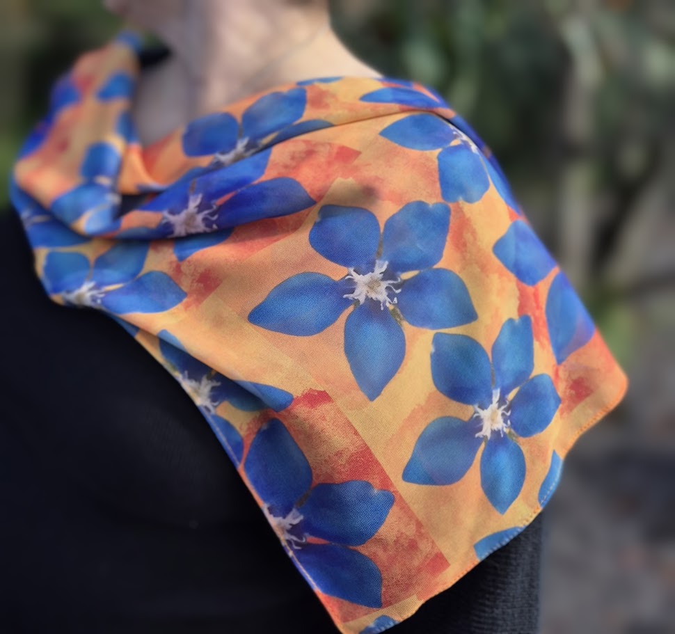 Discover your sophisticated side with this original scarf made of faux silk or georgette fabric. Each scarf, created by Joan, is made from 100% recycled materials. The packaging is also eco-friendly and can be recycled. Carry a piece of the Burren with you, wherever you go, with your unique sense of style and attitude.